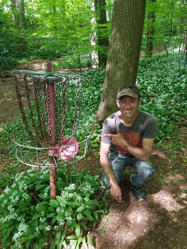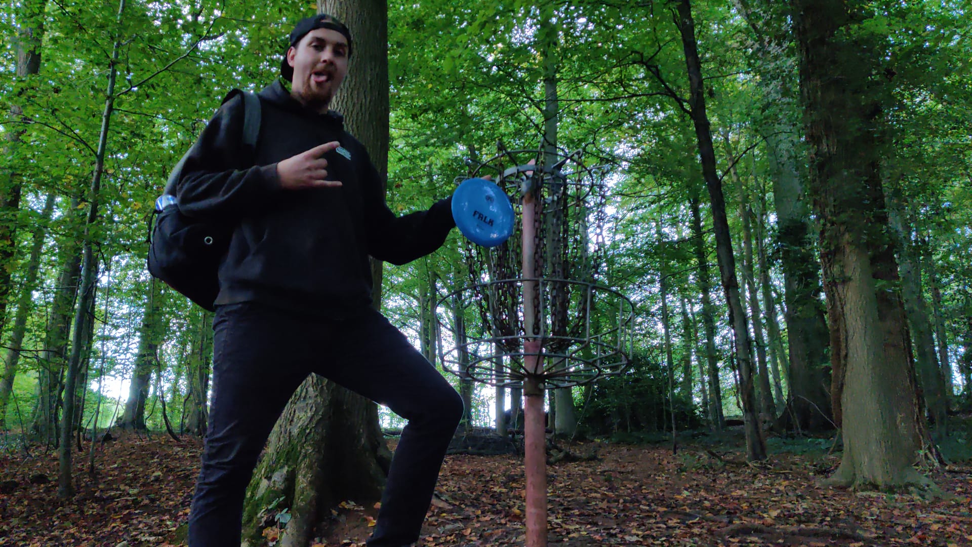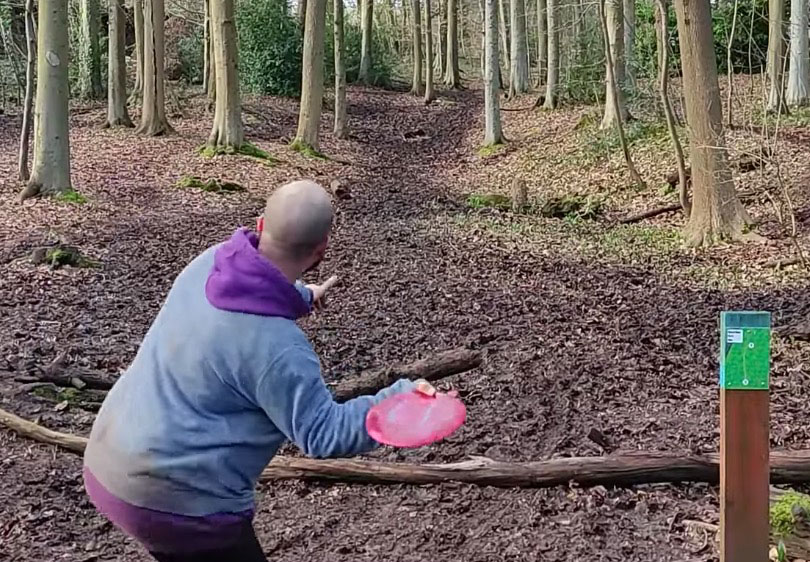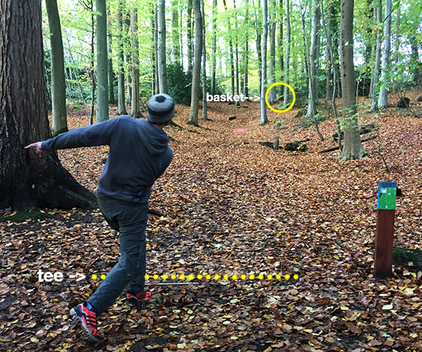 The pink basket can be quite hard to spot from the tee – it’s tucked away to the right.