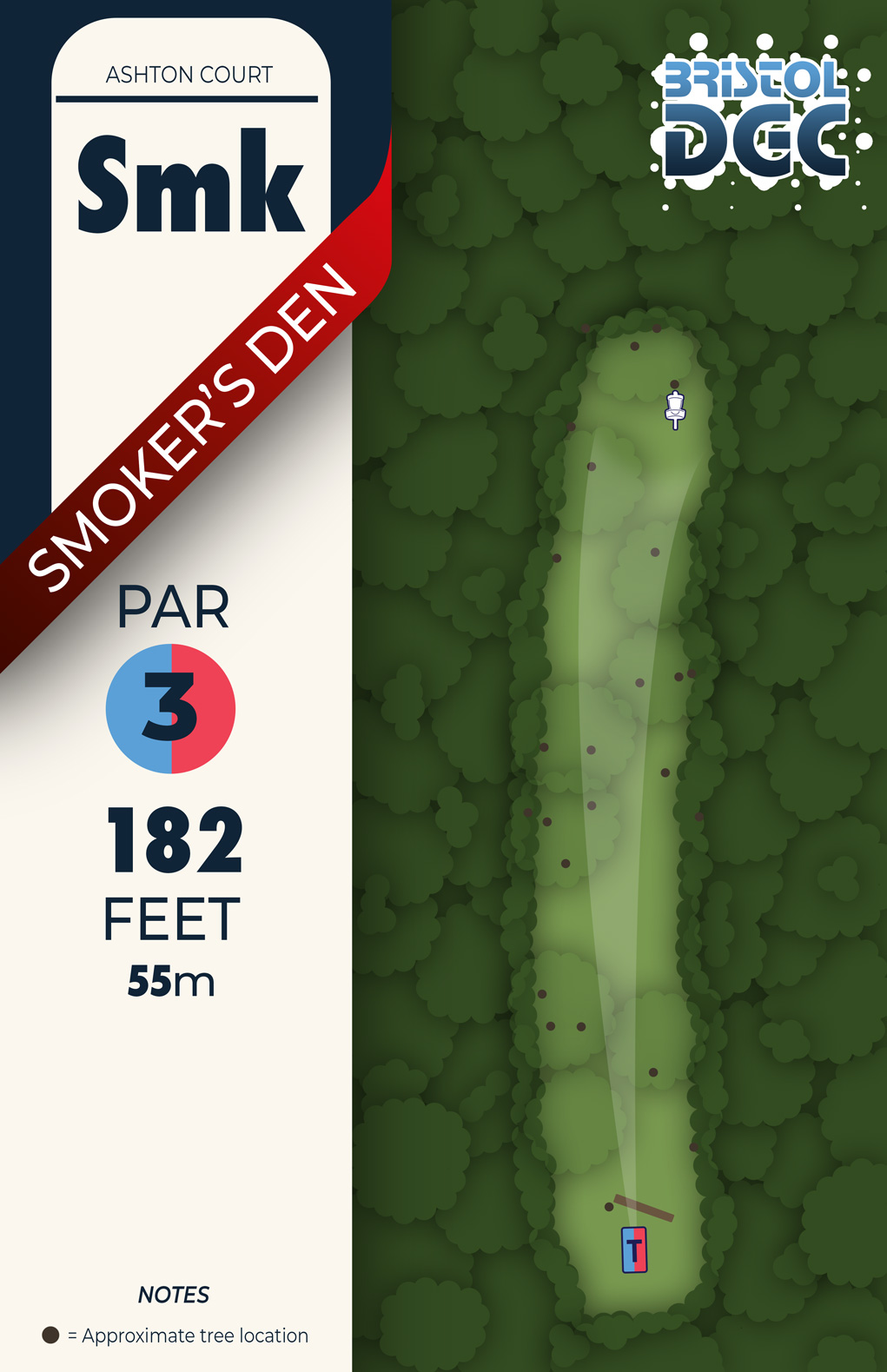 The pink basket can be quite hard to spot from the tee – it’s tucked away to the right.