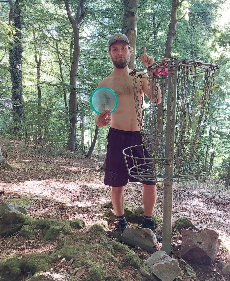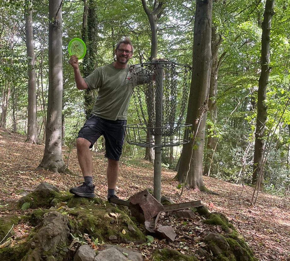 The basket is not easily visible, but if you can get past the holly bush, you’re doing well (unless it rolls down the hill)!