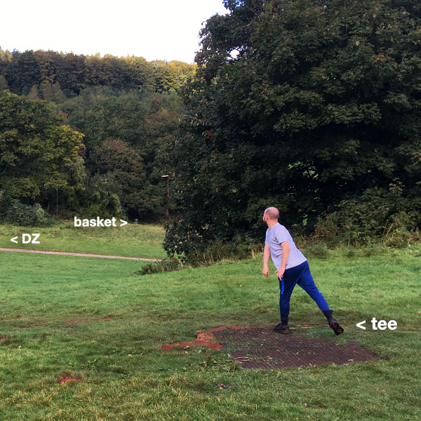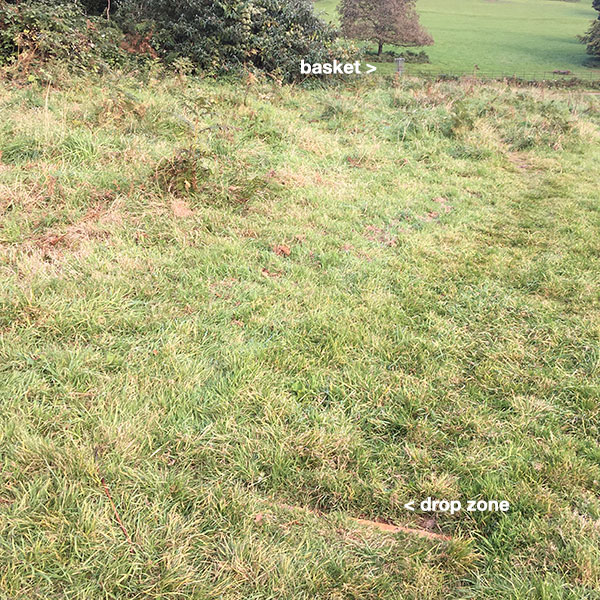 The Drop Zone might not me marked. It’s on the rough by the track, keep moving left until just before you lose sight of the basket.