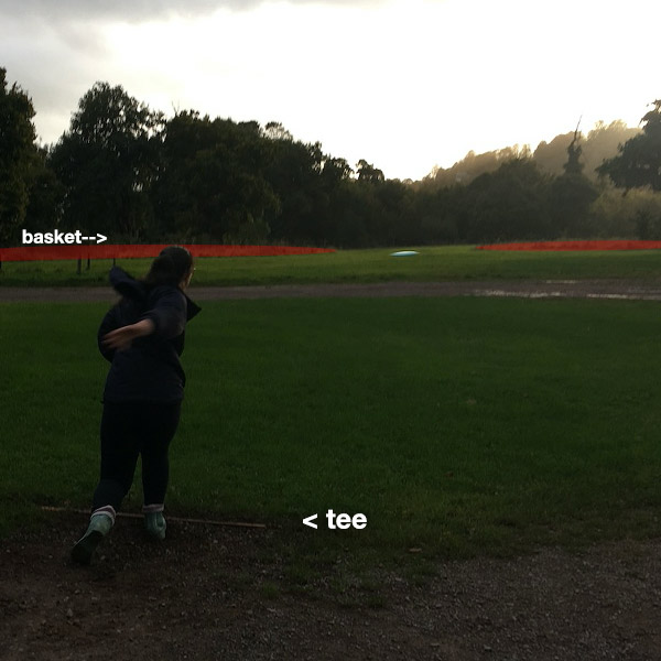 The basket is not actually visible from the tee. Most people aim to land this side of the bottleneck with a placement shot, but some will try to beat the gap.