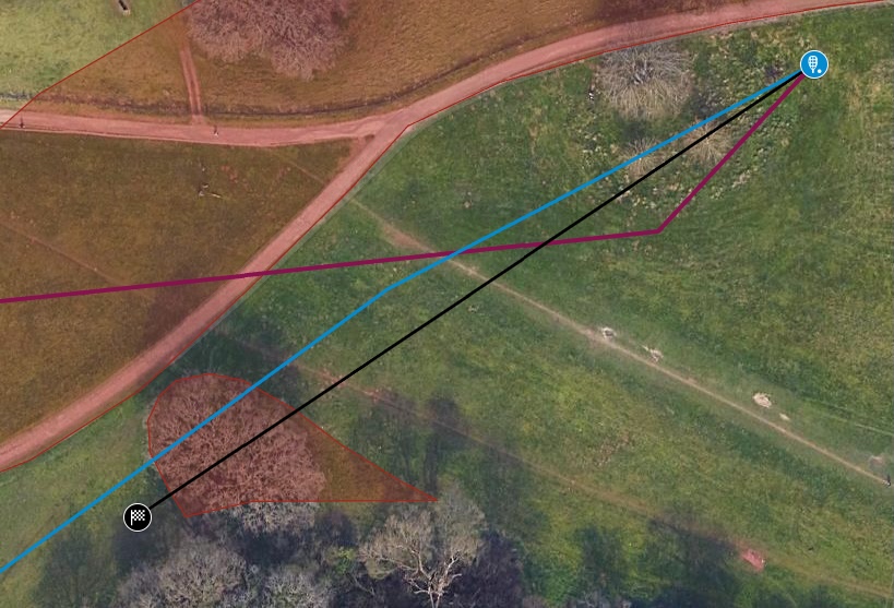 Played to the Par 5 basket from a tee just short of the half way trees. Look at the black line and Tee on the map.