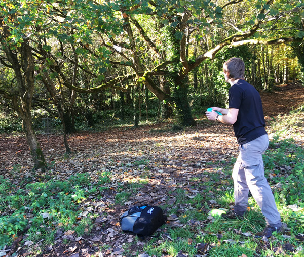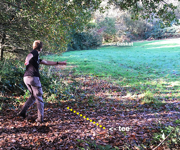 You can’t see the basket from the tee – aim for the white post, then hard left into the woods – but be aware that going left early makes your approach tricky.