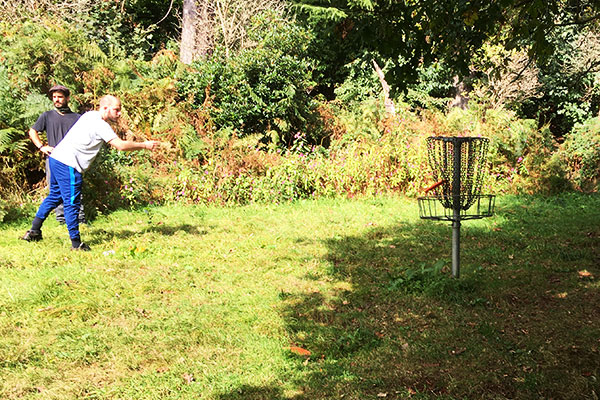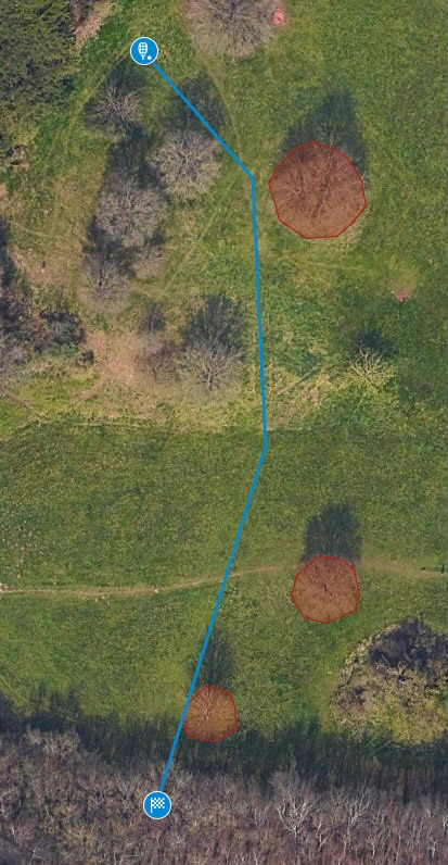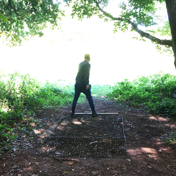 From the tee, power throwers can get over the hump, but most of us want to land mid way between the two trees.