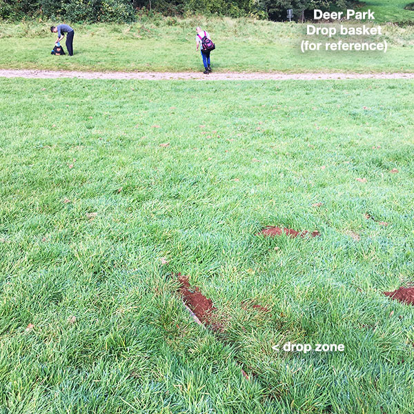 The basket is beyond the trees in the distance!