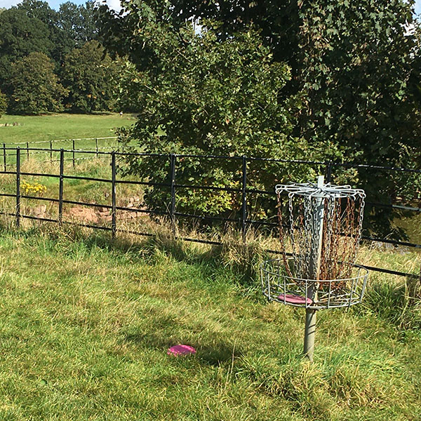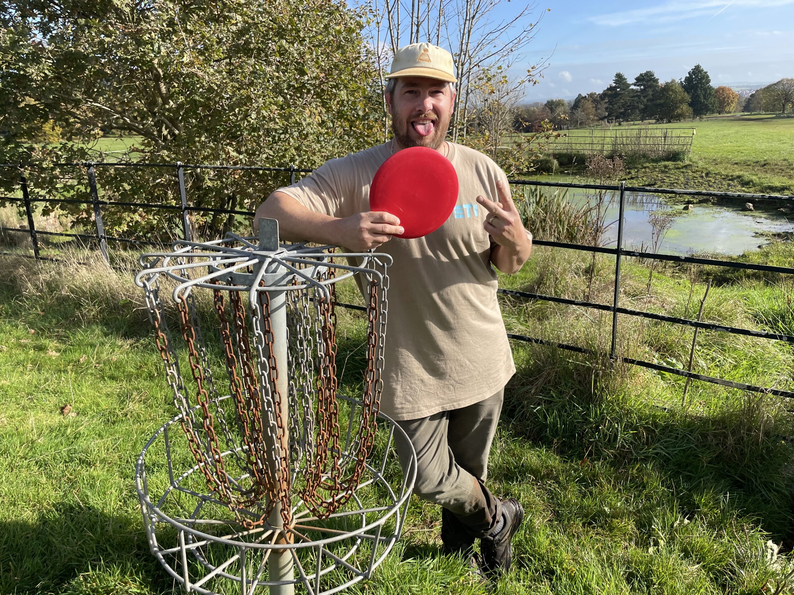 Warning: The pond is stagnant water inhabited by leeches, and people throw bags of dog poop into it. Disc retrieval should only be attempted with extreme caution.